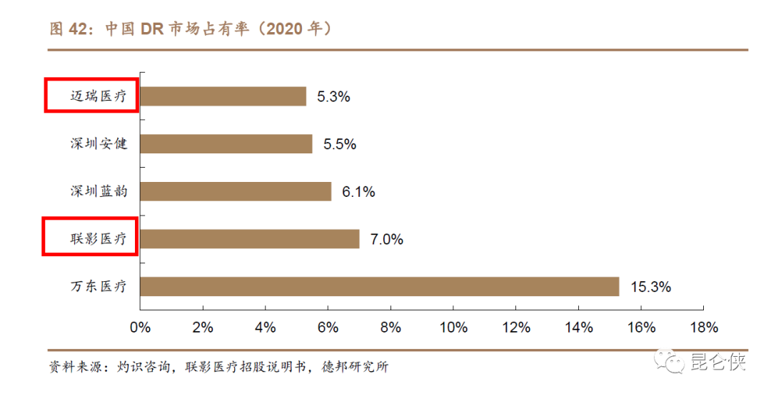 根據(jù)聯(lián)影招股說明書顯示,按新增臺(tái)數(shù)占有率口徑,2020年度聯(lián)影醫(yī)療的產(chǎn)品MR、CT、PET/CT、PET/MR及DR排名均處在行業(yè)前列。