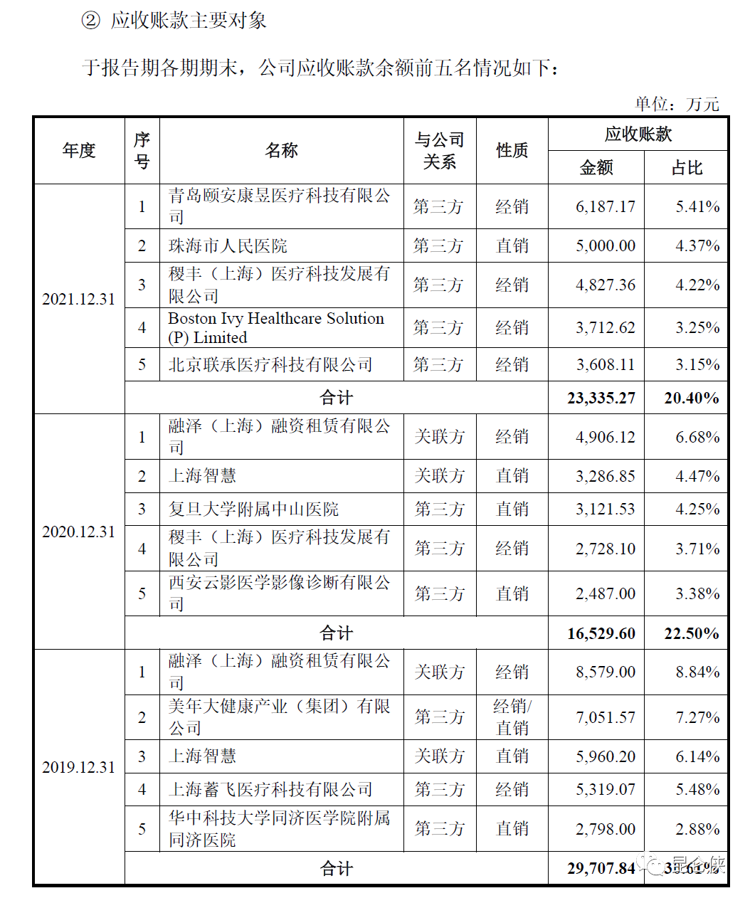 這使我好奇這些應(yīng)收賬款的對(duì)象都是誰,通過查閱過去3年的資料我們了解到聯(lián)影目前主要的應(yīng)收賬款對(duì)象是經(jīng)銷商和部分直銷的醫(yī)院。
