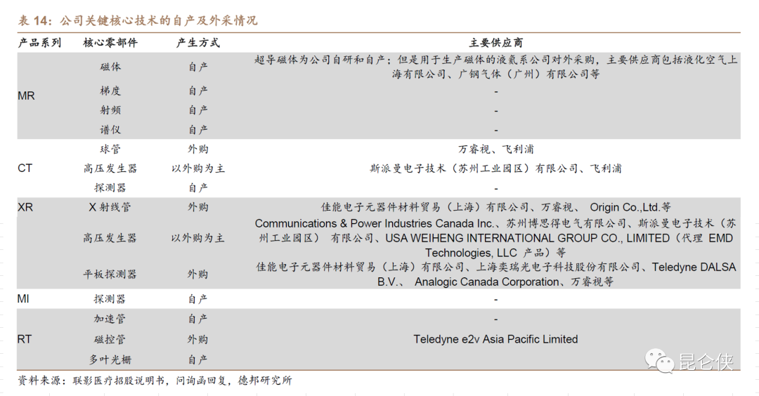 聯(lián)影醫(yī)療招股書中也提及到這點(diǎn),目前該公司生產(chǎn)CT產(chǎn)品用的球管和高壓發(fā)生器,生產(chǎn)XR產(chǎn)品用的X射線管、高壓發(fā)生器和平板探測器以及生產(chǎn)RT產(chǎn)品用的磁控管等核心部件仍以外購為主,并且存在無法穩(wěn)定供應(yīng)的風(fēng)險(xiǎn)。