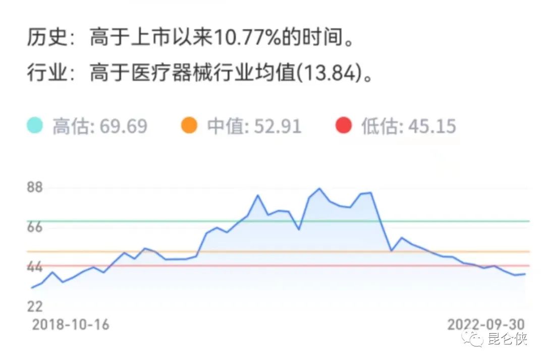 邁瑞2018年10月上市,19年初市值1300多億,靜態(tài)PE大約是36倍,動(dòng)態(tài)PE大概30倍,是上市以來估值低的階段。大部分時(shí)間公司PE在50-60倍之間波動(dòng)。