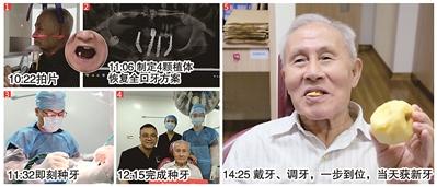“早上還缺著牙,下午就戴上了,還用新牙吃起了蘋果。為什么我就沒早點重視牙齒問題?”說起自己的種牙經(jīng)歷,87歲的林爺爺一邊為自己二十多年的缺牙生活唏噓不已,一邊難掩興奮。