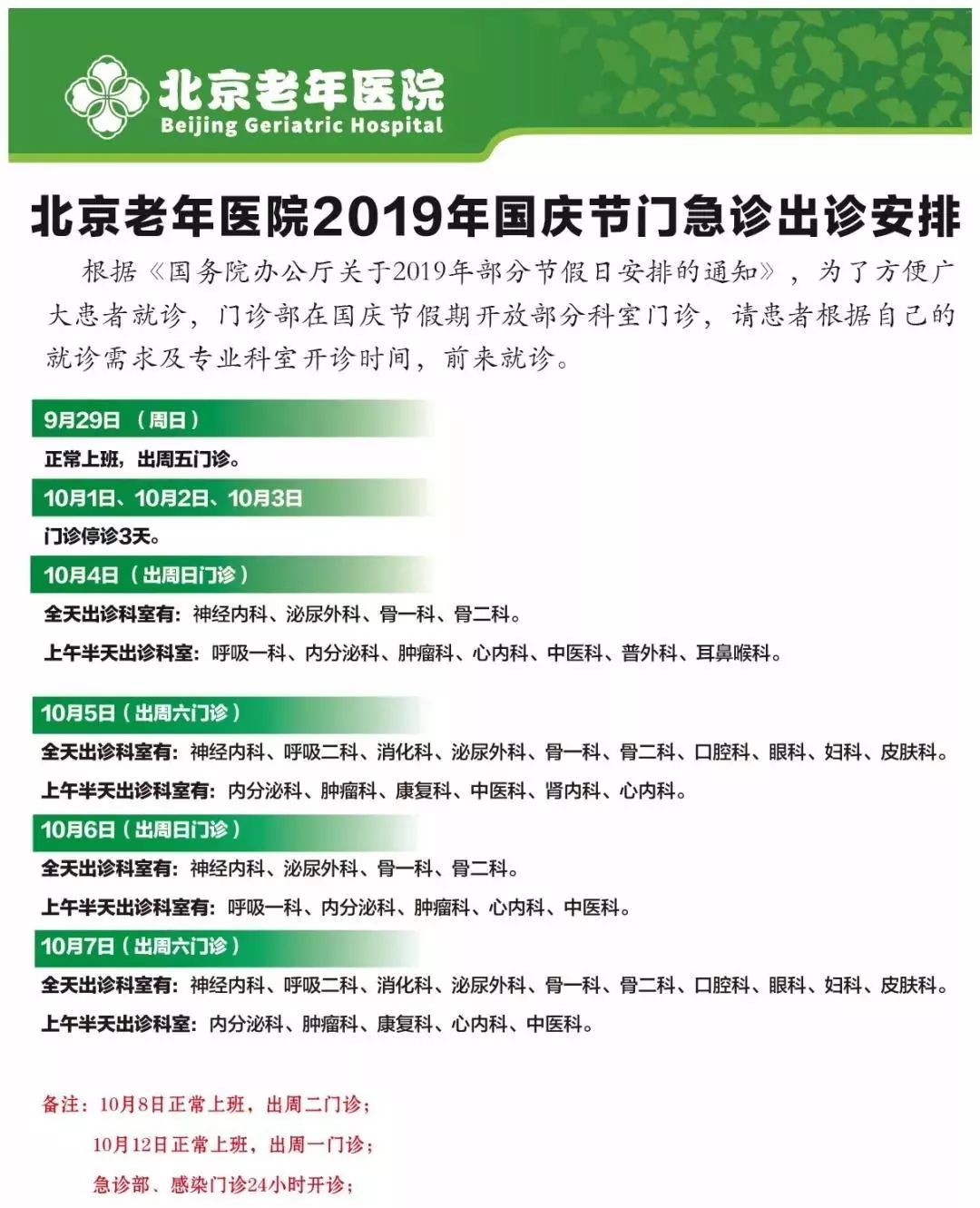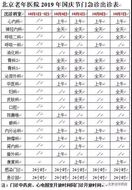 10月1日(國(guó)慶節(jié))~10月3日:門診為上午半日門診(綜合科、老年科、乳腺科、內(nèi)分泌科、男科、疼痛科、推拿科、營(yíng)養(yǎng)門診停診)。